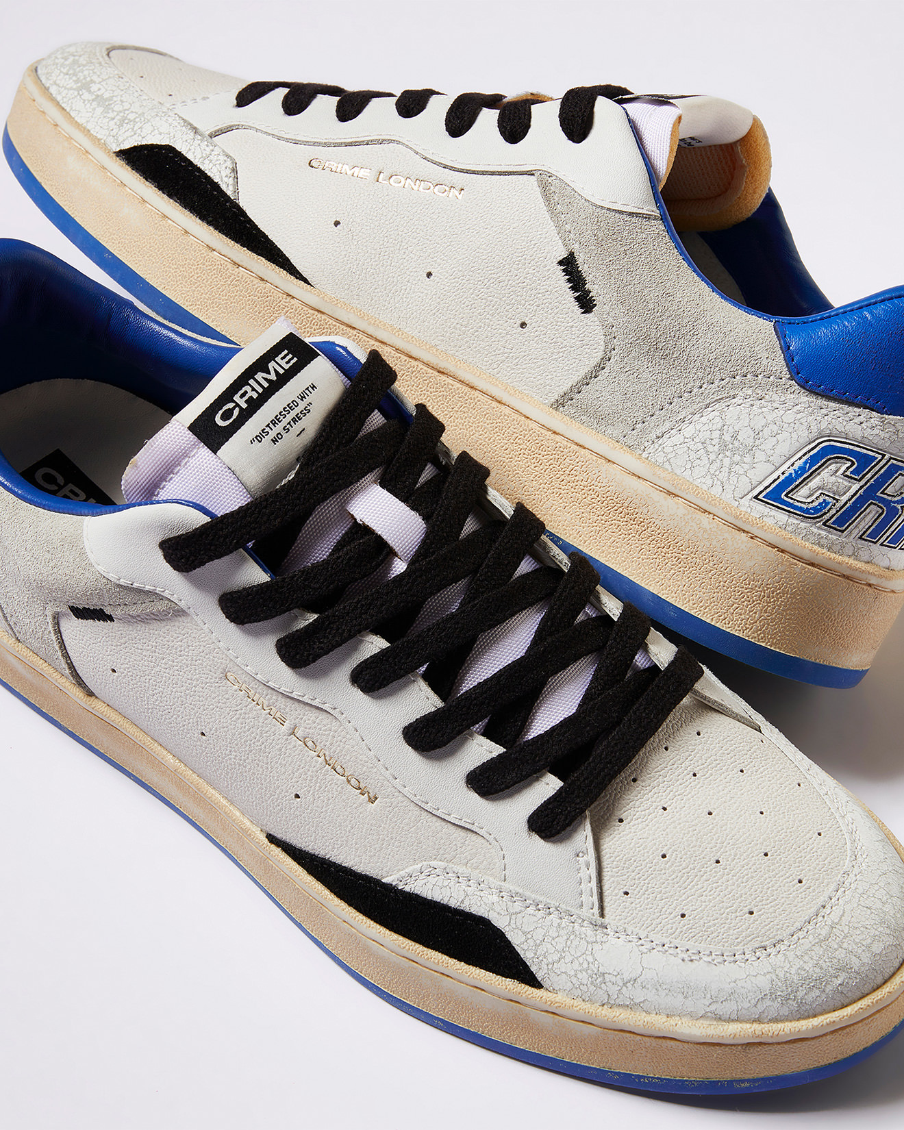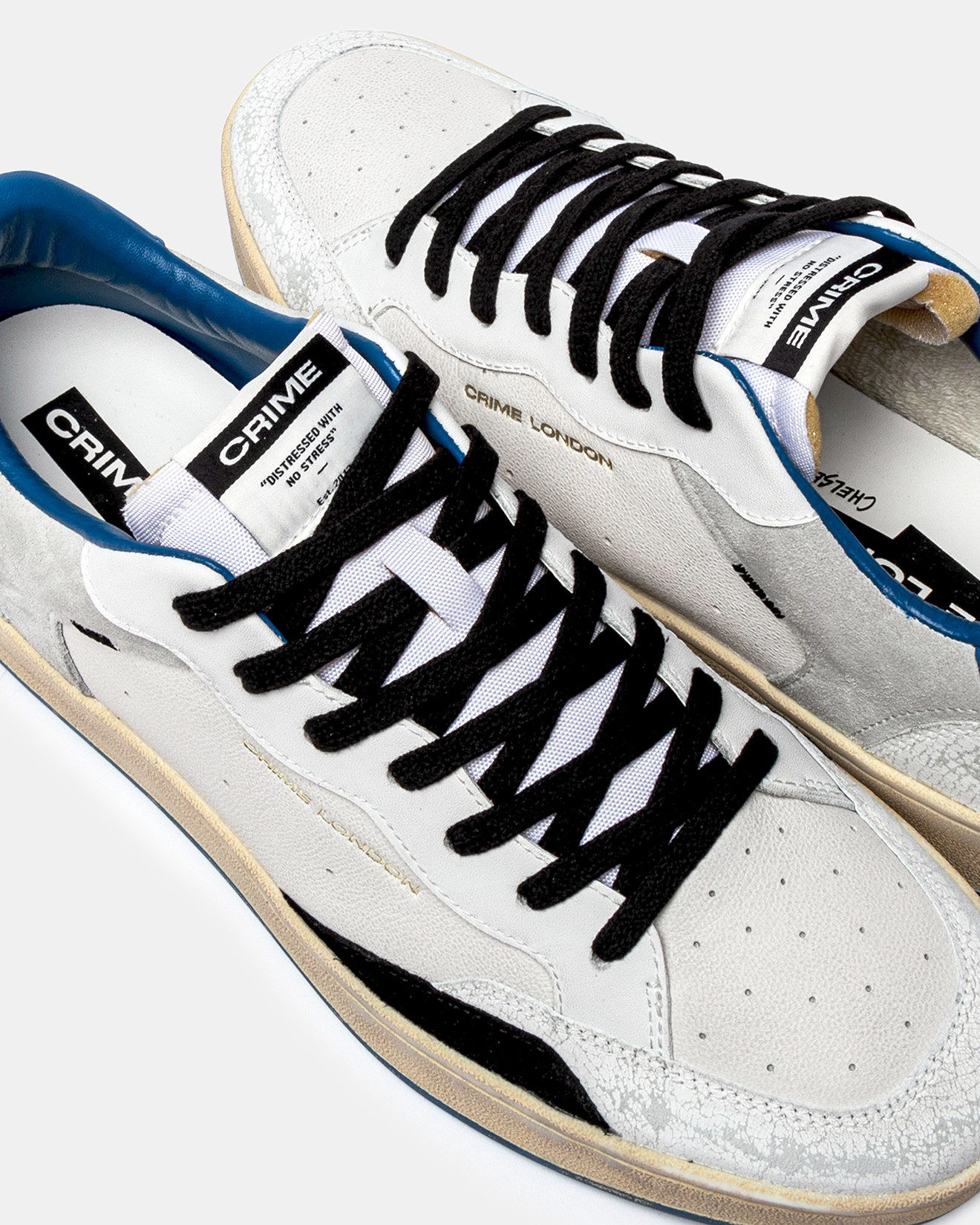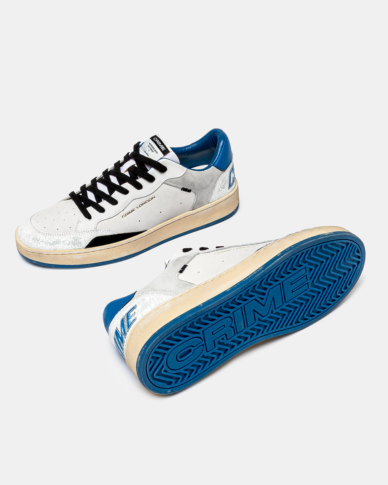 White crackled heel with CRIME logo
